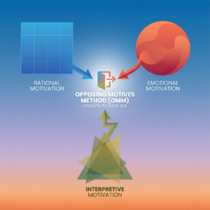 辞めたい理由があるでも、辞めない理由も同時に存在する。この「両方の気持ちが同時に動いている状態」は人として当たり前に起きます。このような状態が起きると人は”悩んでいる”と認識します。これは相反する動機がぶつかり合っている状態で、この状態を分析するためのメソッドが相反動機分析メソッド(OMM:Opposing Motives Method)です。